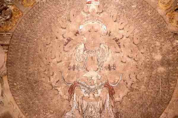 榆林窟:榆林窟是敦煌石窟的组成部分,开凿于隋唐以前。现存唐、五代、宋、西夏、元等朝代洞窟43个,分布在榆林河东、西两岸的悬崖峭壁上,东崖32个、西崖11个、壁画4200平方米,彩塑259身,约占莫高窟壁画总面积的九分之一。榆林窟在内容、艺术风格、绘画形式方面同莫高窟一脉相承,同为姊妹窟。